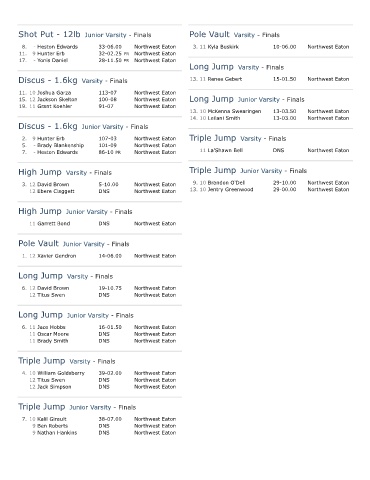Shot Put - 12lb Junior Varsity - Finals Pole Vault Varsity - Finals