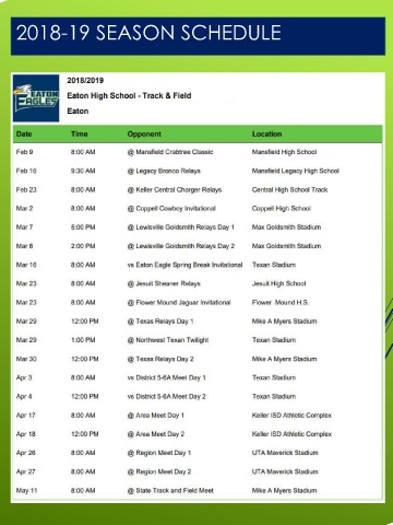 2018-19 SEASON SCHEDULE