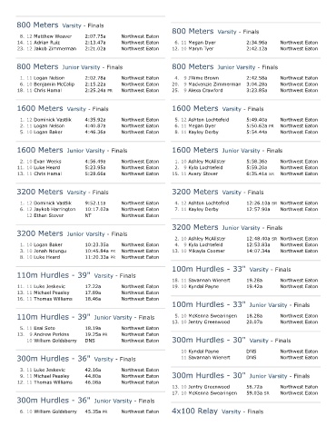 9. 11 Michael Peasley 44.80a Northwest Eaton 300m Hurdles - 30" Junior Varsity - Finals