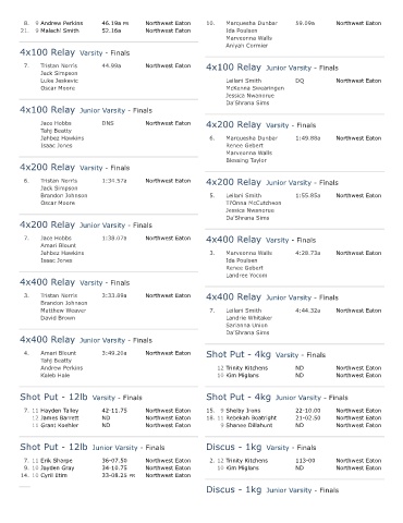 8. 9 Andrew Perkins 46.19a PR Northwest Eaton 10. Marquesha Dunbar 59.09a Northwest Eaton