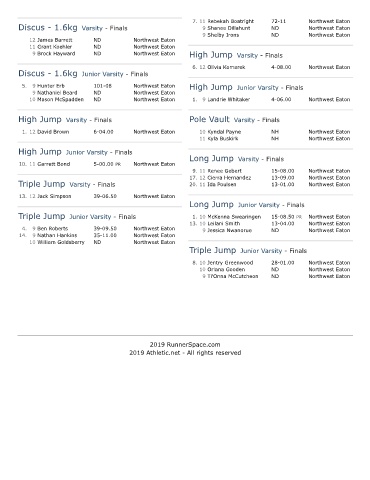 4. 9 Ben Roberts 39-09.50 Northwest Eaton 9 Jessica Nwanorue ND Northwest Eaton