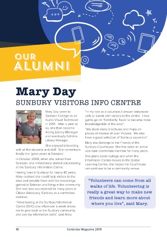 “Volunteering at the Sunbury Information where you live”, said Mary.