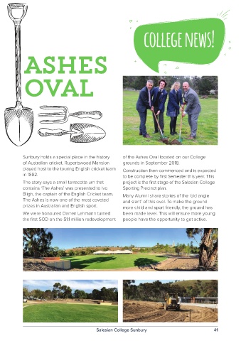 Sunbury holds a special place in the history of the Ashes Oval located on our College
