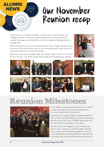 Alumni reunion. This takes place the day after the Rupertswood Harvest.