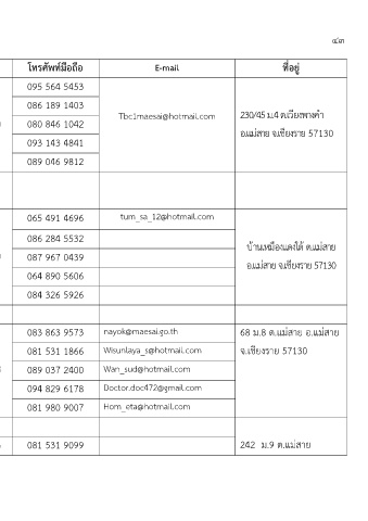 Tbc1maesai@hotmail.com 230/45 ม.4 ต.เวียงพางค า