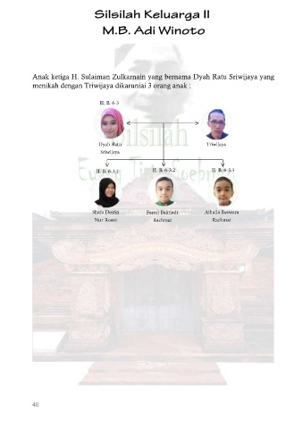 Anak ketiga H. Sulaiman Zulkarnain yang bernama Dyah Ratu Sriwijaya yang menikah dengan Triwijaya dikaruniai 3 orang anak : 40
