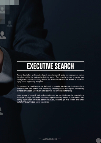 Amoria Bond offers an Executive Search consultancy with global coverage across various disciplines within the engineering industry sector. Our focus is on mid to senior level management positions, including director and executive director roles, as well as niche and highly skilled engineering disciplines.
