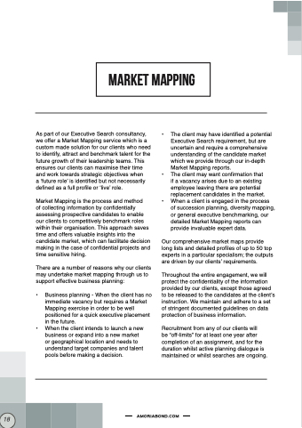 • The client may have identified a potential Executive Search requirement, but are uncertain and require a comprehensive understanding of the candidate market which we provide through our in-depth Market Mapping reports.