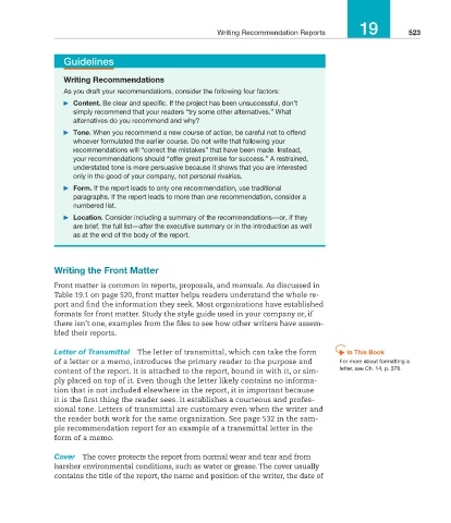 Table 19.1 on page 520, front matter helps readers understand the whole re-