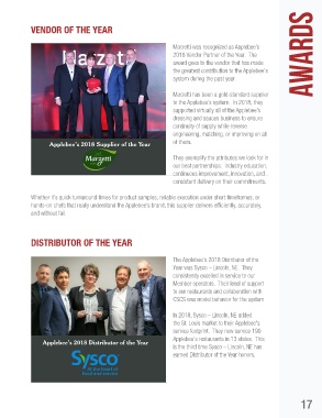 Applebee’s 2018 Supplier of the Year engineering, matching, or improving on all