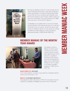 and use the feedback to address concerns, assess new offerings, MEMBER MANIAC WEEK