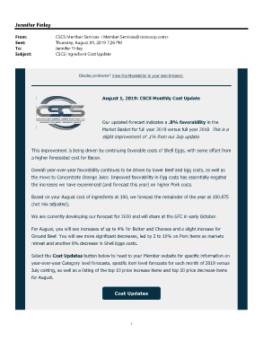 the move to Concentrate Orange Juice. Improved favorability in Egg costs has essentially negated