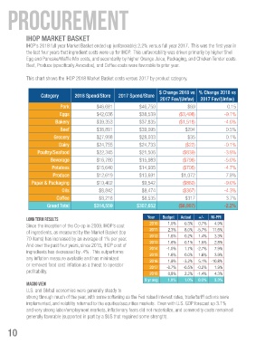 This chart shows the IHOP 2018 Market Basket costs versus 2017 by product category.