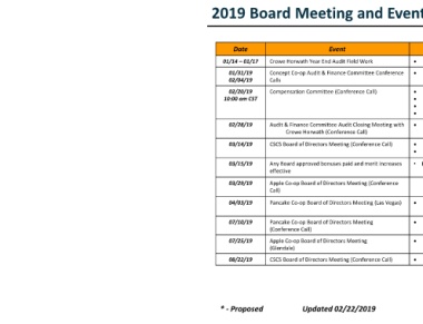 04/03/19 Pancake Co-op Board of Directors Meeting (Las Vegas) • Year-end reviews by Concept Co-ops