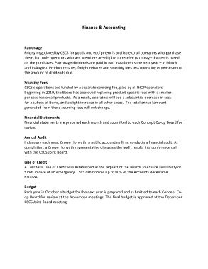 Financial statements are prepared each month and submitted to each Concept Co-op Board for