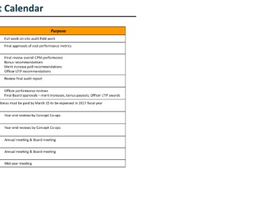 01/31/19 Concept Co-op Audit & Finance Committee Conference • Final approvals of cost performance metrics