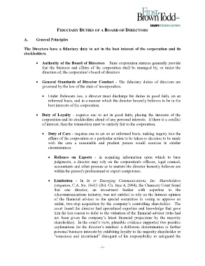 FIDUCIARY DUTIES OF A BOARD OF DIRECTORS