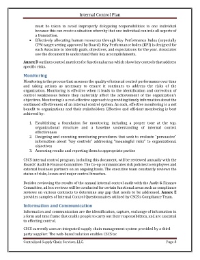 provides samples of Internal Control Questionnaires utilized by CSCS’s Compliance Team.