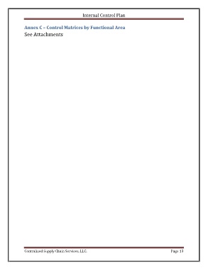 Internal Control Plan Annex C – Control Matrices by Functional Area See Attachments Centralized Supply Chain Services, LLC. Page 13