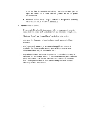 obligations to indemnify directors and officers.
