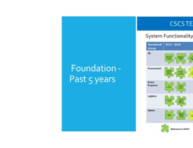 CSCS TECHNOLOGY & DATA ROADMAP System Functionality Overview – 2013 to 2018 Foundation - Past 5 years Delivered in HAVI Delivered outside HAVI Future Scope