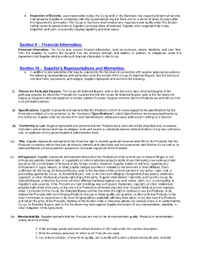 (i) Fitness for Particular Purpose. The Co-op, its Selected Buyers, and/ or the Servicers have informed Supplier of the