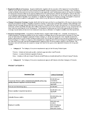 relevant and material changes in Supplier’s insurance coverage. To the extent commercially available, each certificate must