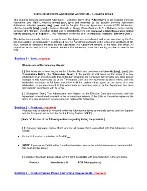 SUPPLIER SERVICES AGREEMENT ADDENDUM – BUSINESS TERMS