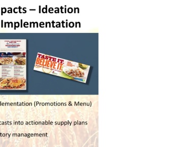 • Product ideation – Testing – Implementation (Promotions & Menu)