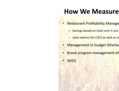 – Joint metrics for CSCS as well as cross functional Brand teams