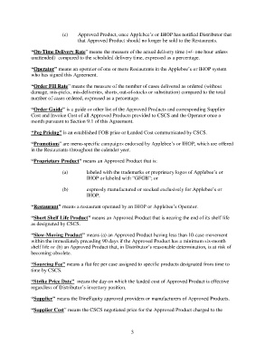 (c) Approved Product, once Applebee’s or IHOP has notified Distributor that