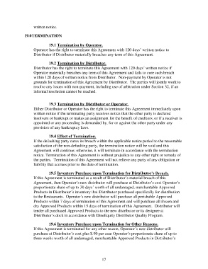 If this Agreement is terminated for any other reason, Operator’s new distributor will