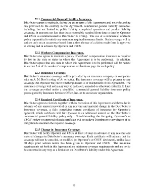 and CSCS as communicated to Distributor in writing. The use of a commercial umbrella