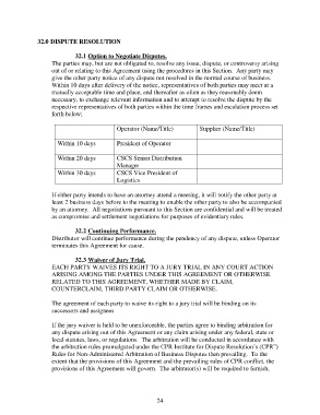 32.0 DISPUTE RESOLUTION