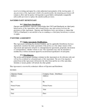 This Agreement is executed by authorized officers of Operator and Distributor.