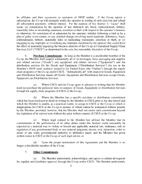 for supplier and distributor approval through the Co-op and/or CSCS. The Member understands,