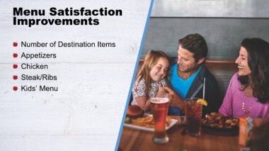 Menu Satisfaction Improvements Number of Destination Items Appetizers Chicken Steak/Ribs Kids’ Menu