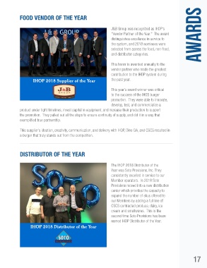 IHOP 2018 Supplier of the Year contribution to the IHOP system during