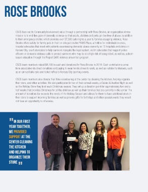 CSCS team members raised $8,700 in cash and donations for Rose Brooks in 2018. Cash contributions come