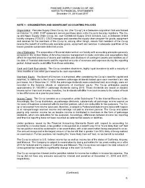 Income Taxes: The Co-op operates as a cooperative under Subchapter T to the Internal Revenue Code.