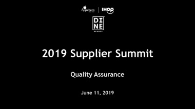 2019 Supplier Summit Quality Assurance June 11, 2019