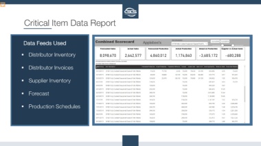 Critical Item Data Report Data Feeds Used Distributor Inventory Distributor Invoices Supplier Inventory Forecast Production Schedules