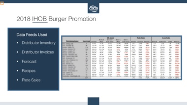 2018 IHOB Burger Promotion Data Feeds Used Distributor Inventory Distributor Invoices Forecast Recipes Plate Sales