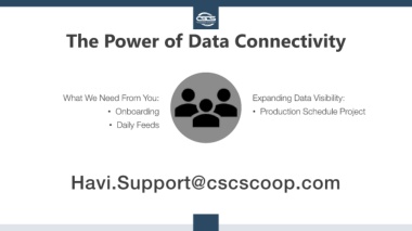The Power of Data Connectivity What We Need From You: Expanding Data Visibility: • Onboarding • Production Schedule Project • Daily Feeds Havi.Support@cscscoop.com