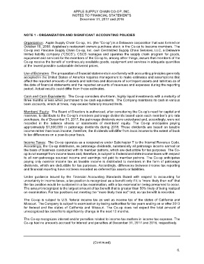 Income Taxes: The Co-op operates as a cooperative under Subchapter T to the Internal Revenue Code.