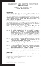 COMPLAINTS AND DISPUTE RESOLUTION