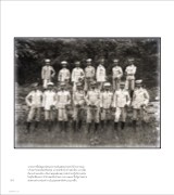 นายทหารชั้นสัญญาบัตรแต่งกายเต็มยศสะพายกระบ่ีถ่ายภาพหมู่ บริเวณกาแพงเมืองเชียงใหม่ แถวหน้ายืนข้างกาแพงเมือง แถวหลัง ยืนบนกาแพงเมือง เป็นภาพชุดหลังเหตุการณ์ปราบปฎิกริยาของไท ใหญ่ในเมืองแพร่ ลาปางและสันกาแพง พ.ศ.๒๔๔๕ ซ่ึงรัฐบาลสยาม