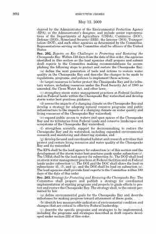 Sec. 202. Reports on Key Challenges to Protecting and Restoring the Chesapeake Bay. Within 120 days from the date of this order, the agencies identified in this section as the lead agencies shall prepare and submit draft reports to the Committee making recommendations for accom- plishing the following steps to protect and restore the Chesapeake Bay:
