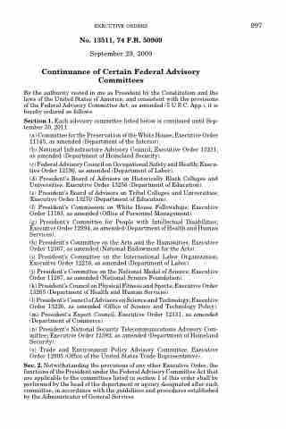Section 1. Each advisory committee listed below is continued until Sep- tember 30, 2011.
