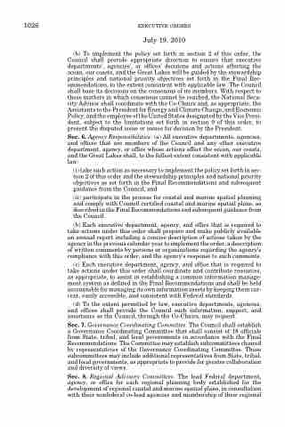 Sec. 6. Agency Responsibilities. (a) All executive departments, agencies, and offices that are members of the Council and any other executive department, agency, or office whose actions affect the ocean, our coasts, and the Great Lakes shall, to the fullest extent consistent with applicable law: